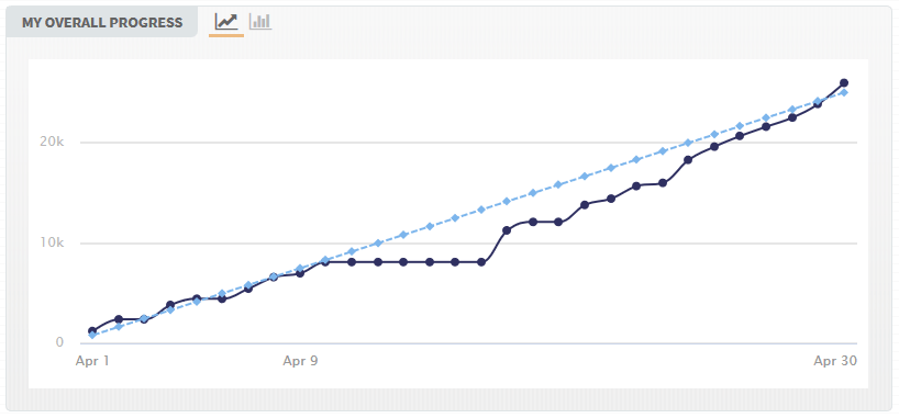 I was one of those students who left essay writing to the last minute. And I mean that literally – I distinctly remember submitting a few first-year essays at 11:59pm. I haven’t lost any of that just-in-time mentality apparently: I was behind my daily word goal for every day after 5th April… until the final day. Look at that controlled ascent at the end. It’s almost like I planned it. (I didn’t.)
