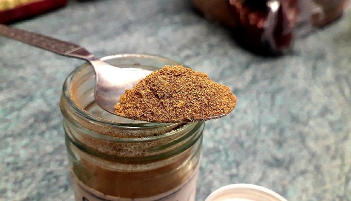 I haven’t eaten anything with it yet, but it smells… Christmassy. Which makes a certain kind of sense, because here in the UK at least, Christmas is the time of year we eat old-fashioned style foods, like fruitcakes and mince pies. It smells strong, so I suppose it lives up to its name. The cinnamon and ginger give it a sweet kind of smell, while the black pepper and cloves make it heady – if you huffed on it long enough, it would certainly give you a headache.