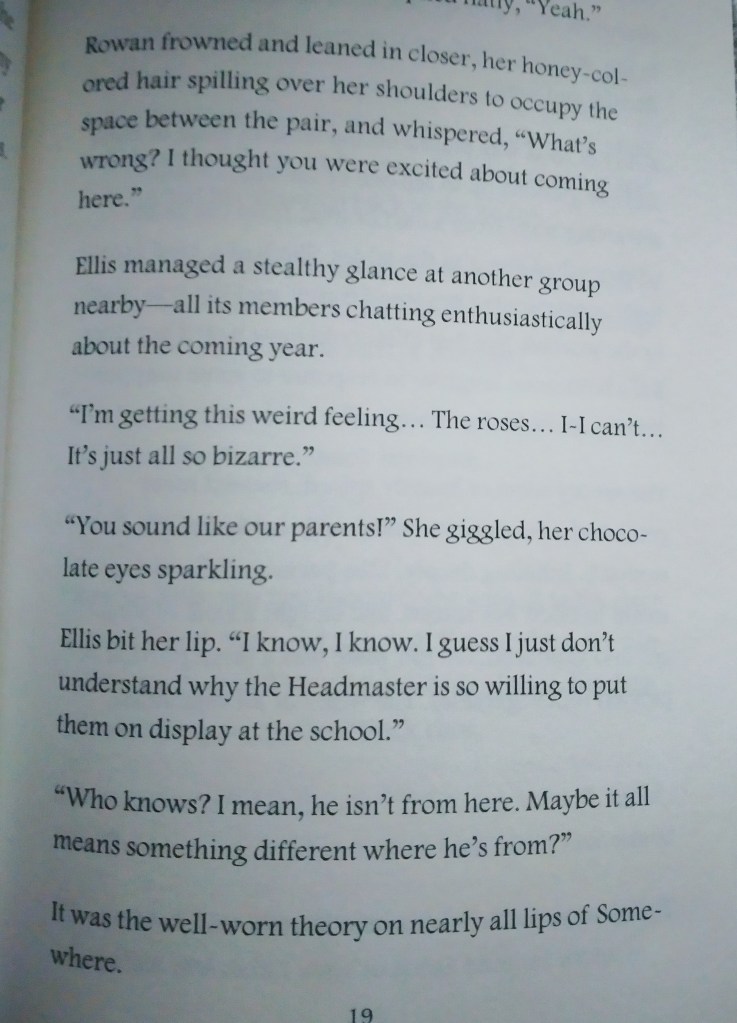 Between the experimental layout of the pages and the closeness of the narration to the mind of the main character, Ellis, Garden never really lets you land on your feet. This is especially true in her moments of anxiety and distrust, which is in stark contrast to the characters around her. Very early on Ellis gets a sense that something’s not quite right, setting her apart from the rest of her classmates.