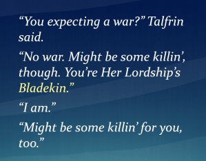 They wander the world alone, encountering fire and shadow wraiths, moss barons and secret royal agents. They each have their own problems, their own missions. They walk the shield road.